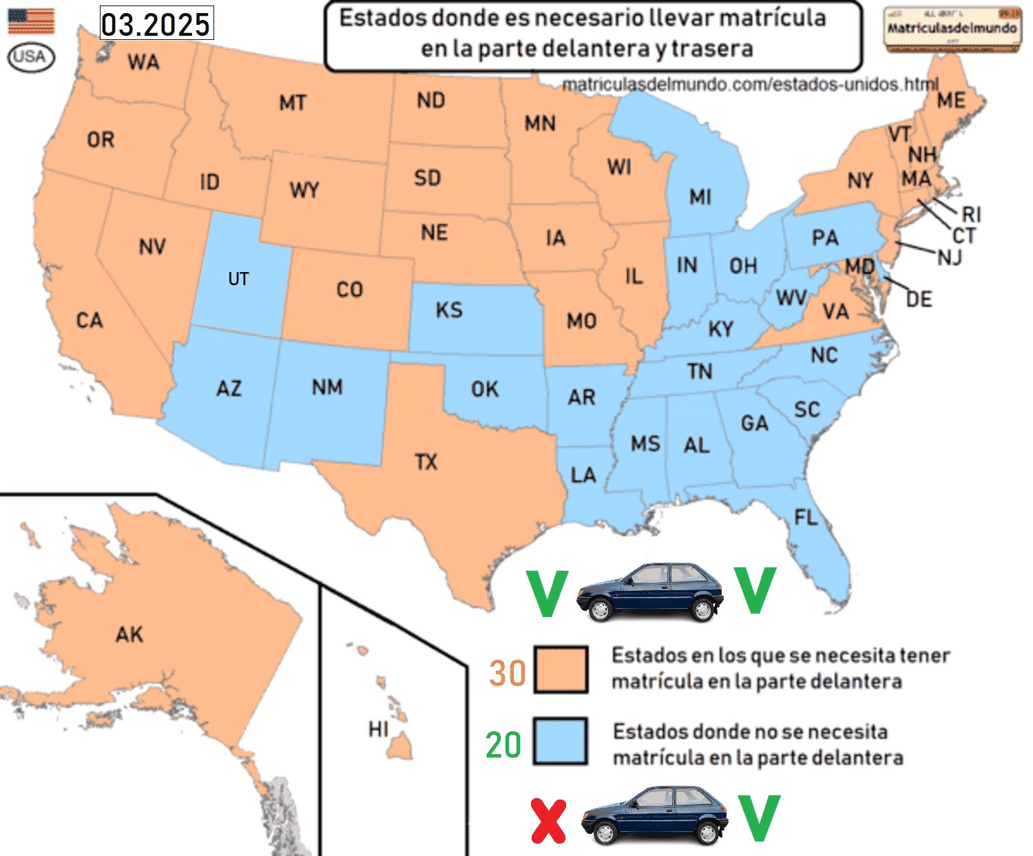 Matriculasdelmundo. Matrículas de Estados Unidos. Información revisada y actualizada. Matriculasdelmundo.com. Recuperado el 22/01/2026 de https://