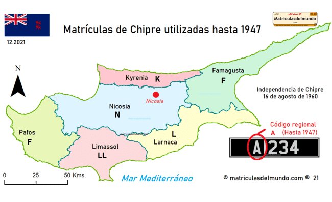 Las matrículas de coches de Chipre desde 2013, utilizan el formato europeo. En la parte izquierda se muestra la eurobanda con el código internacional CY. La configuración es de tres letras y tres números. Entre ellos, se muestra la fecha del primer registro.